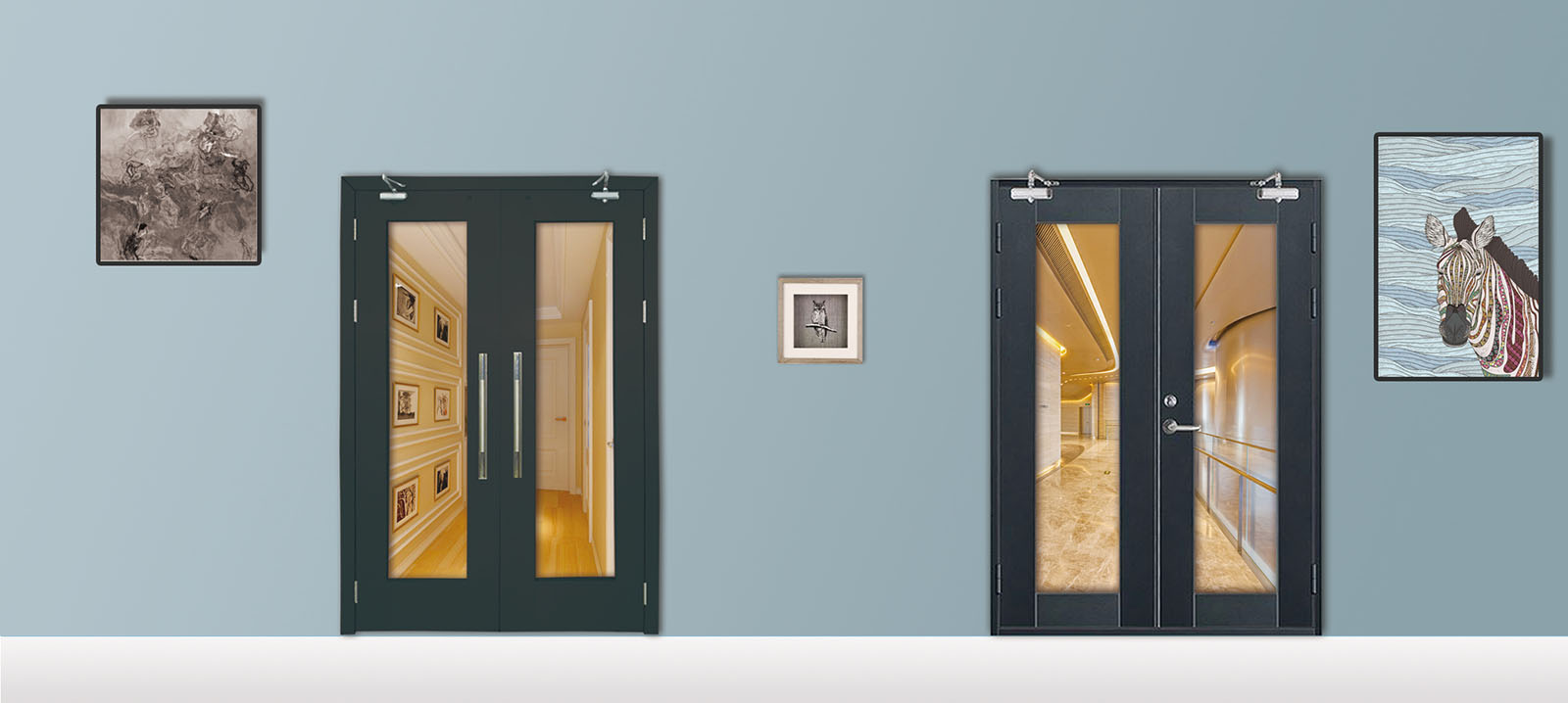 隔熱防火(huǒ)玻璃門(mén)又稱玻璃防火(huǒ)門(mén),它具有(yǒu)和(hé)鋼質防火(huǒ)門(mén)同等的防火(huǒ)等級規範,又有(yǒu)全透明(míng)采光的優點,産品由兩層玻璃原片,四周以特制(zhì)阻燃膠條密封。中間(jiān)灌注的防火(huǒ)膠液,經固化後為(wèi)透明(míng)膠凍狀與玻璃粘接成一體(tǐ),表面鋼框材質分為(wèi)不鏽鋼材質、鋼質噴塗材質,內(nèi)填充不燃防火(huǒ)材料,其産品不但(dàn)具有(yǒu)很(hěn)好的實用性,而且還(hái)可(kě)以起到一定的裝飾效果,達到美觀、實用符合消防規範的目的。